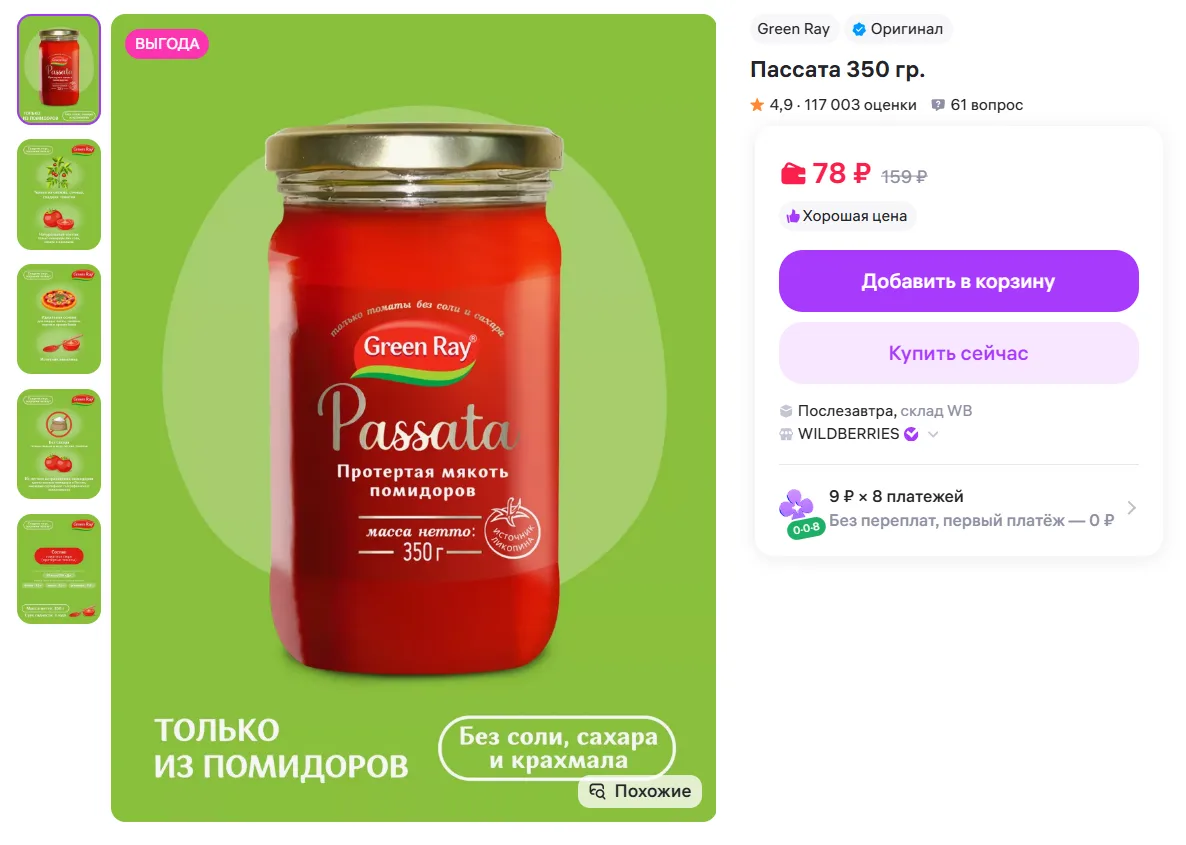 Пассата Green Ray 350 гр. за 78₽ - https://www.wildberries.ru/catalog/38295308/detail.aspx