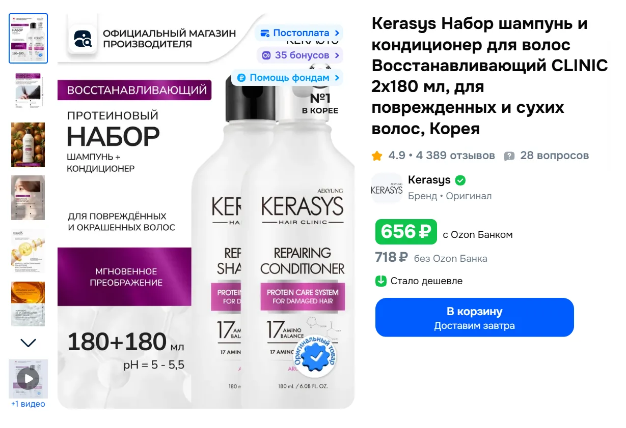 Kerasys Набор шампунь и кондиционер для волос Восстанавливающий CLINIC 2х180 мл за 656₽ с Ozon Банком - https://ozon.ru/t/Qif18oL