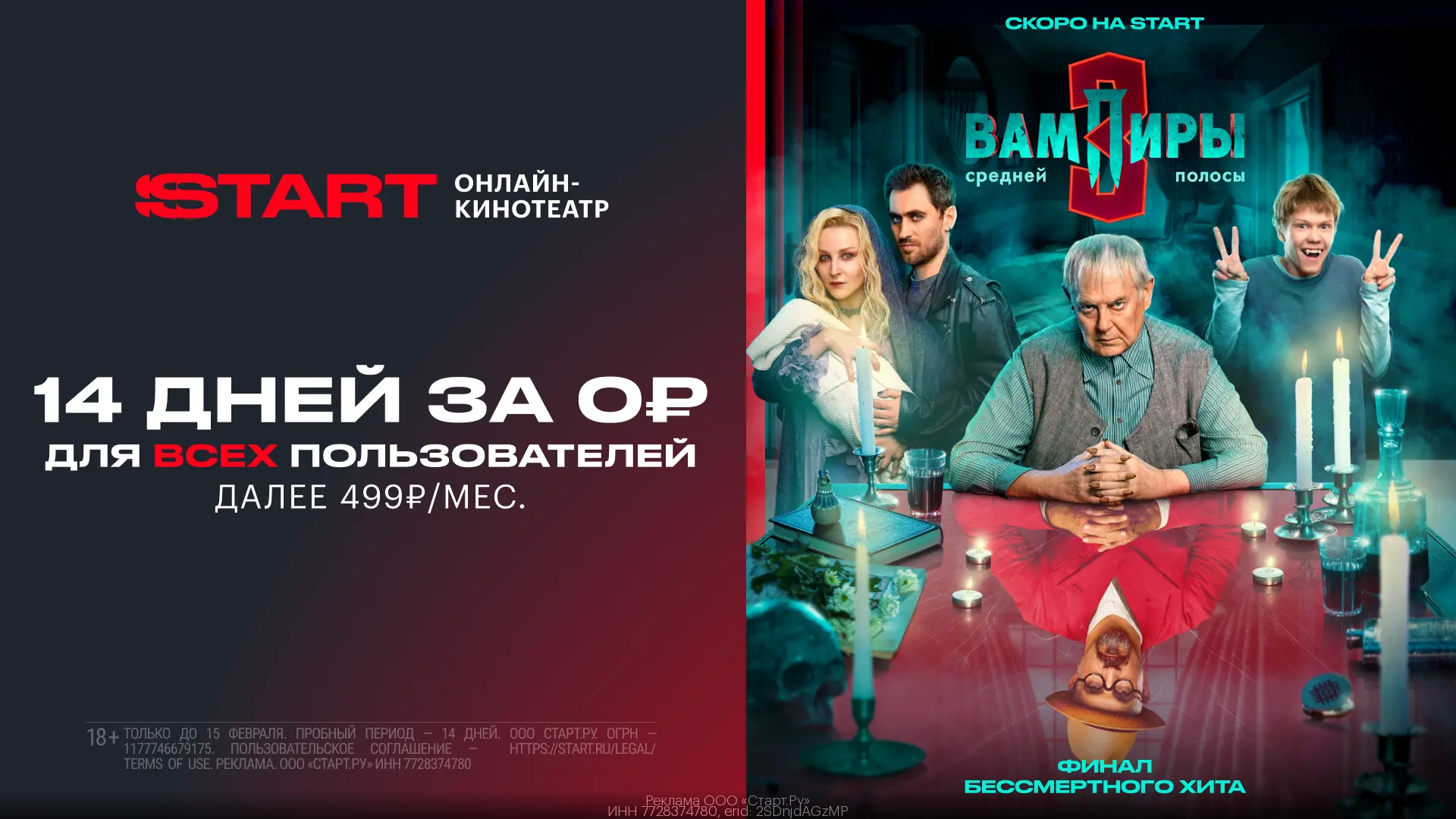 14 дней бесплатной подписки в онлайн-кинотеатр 🎥 START