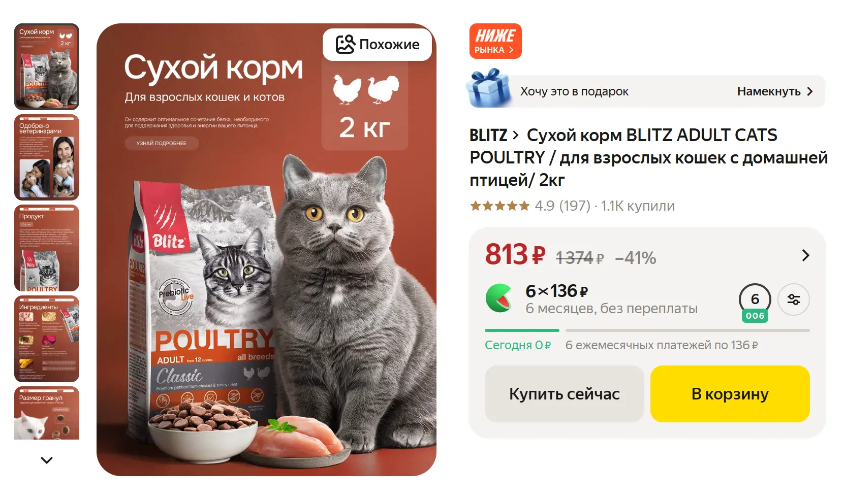 🙀 Сухой корм BLITZ ADULT CATS POULTRY для взрослых кошек с домашней птицей, 2кг за 813₽ - https://market.yandex.ru/cc/8q7nAS