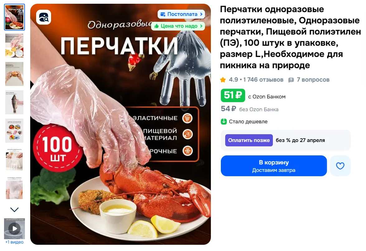 Перчатки одноразовые полиэтиленовые, Одноразовые перчатки, Пищевой полиэтилен (ПЭ), 100 штук в упаковке, размер L,Необходимое для пикника на природе за 51₽ с Ozon Банком - https://ozon.ru/t/6dhOXm9