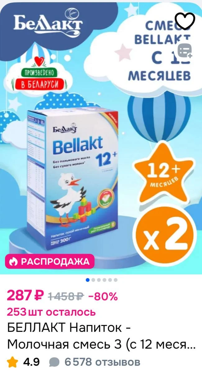 🚙БЕЛЛАКТ Напиток - Молочная смесь 3 (с 12 месяцев), "Bellakt 12+" набор 2 пачки по 300 гр