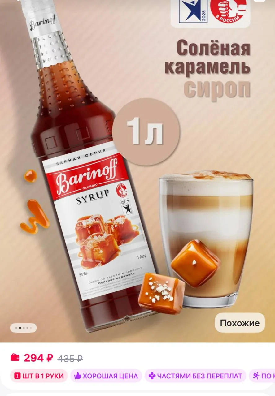 🟪 Barinoff Сироп Соленая Карамель для кофе и десертов 1 л стекло