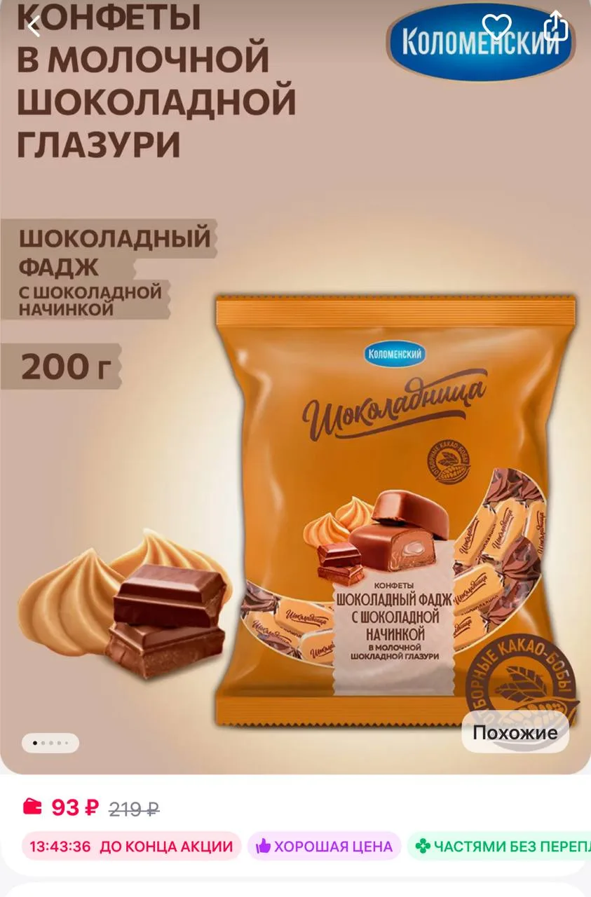 🟪КОЛОМЕНСКИЙ ХОЛДИНГ Конфеты Шоколадный фадж с глазурью 200 г