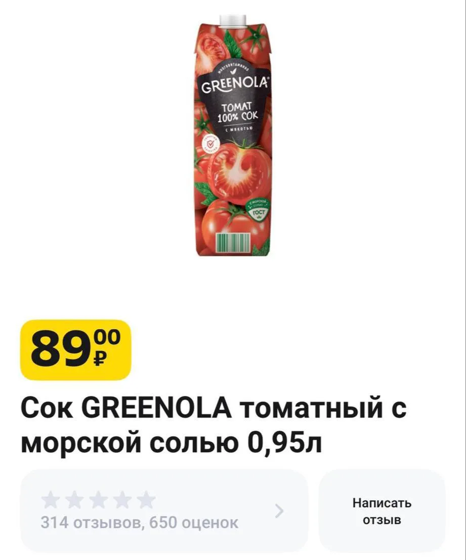 71₽ цена сегодня с купоном на сок томатный, не более 5 шт