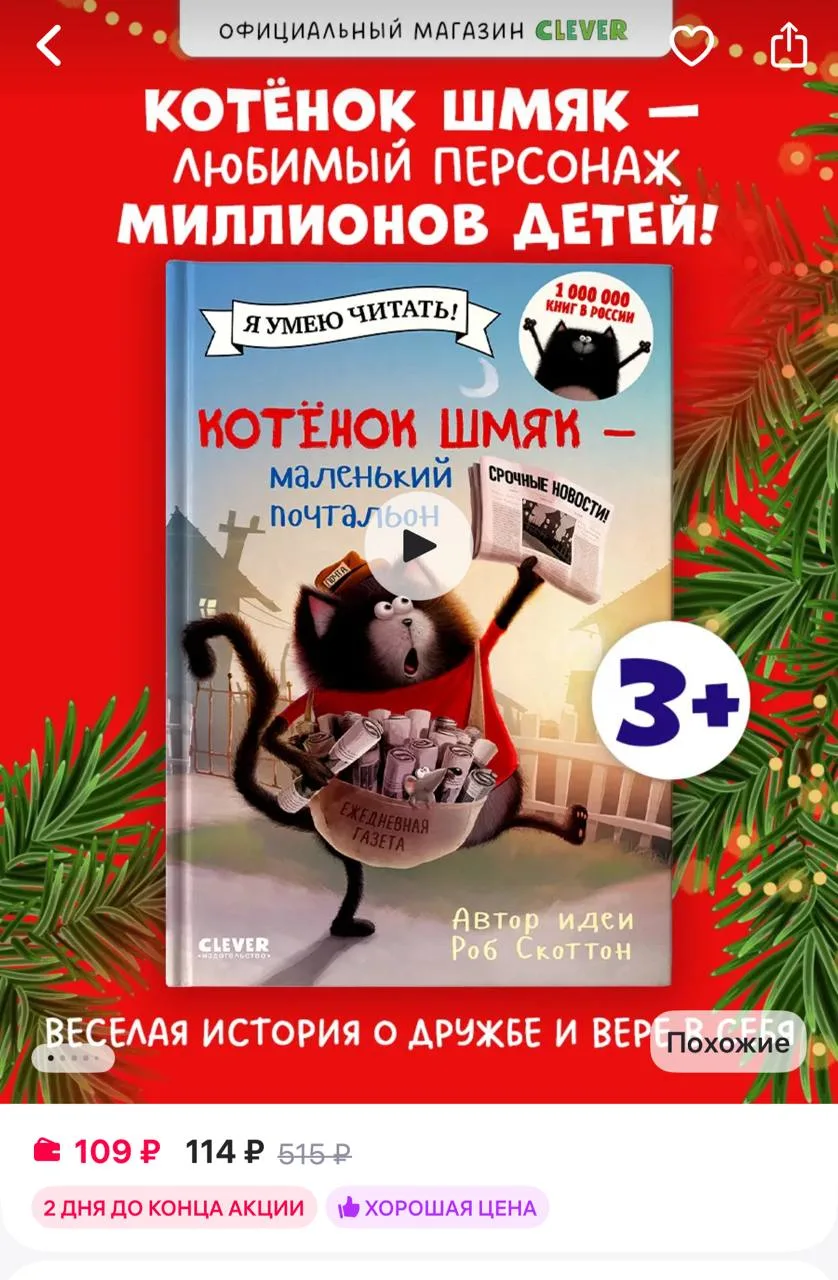 🟪 Издательство CLEVER Котенок Шмяк - маленький почтальон. Сказки, книги для детей