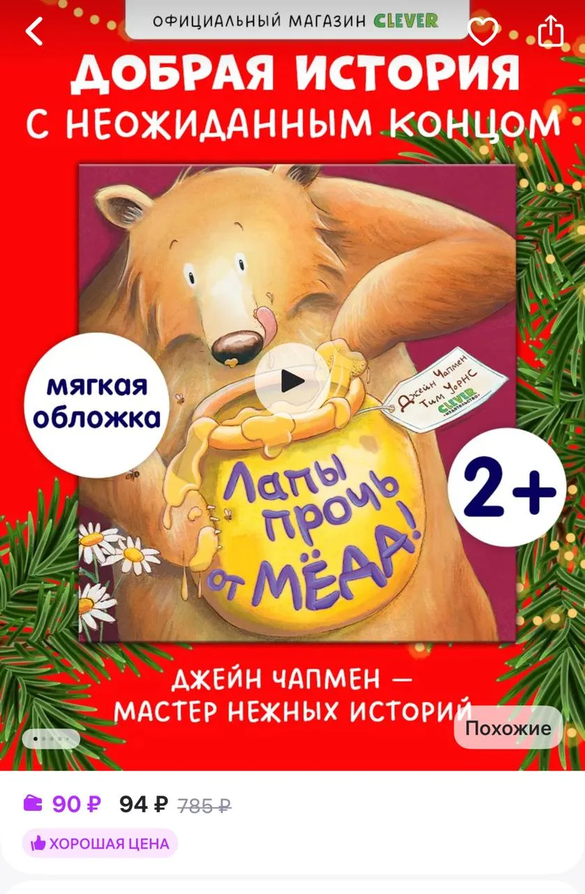 🟪 Издательство CLEVER Лапы прочь от мёда. Сказки для малышей, книги для детей