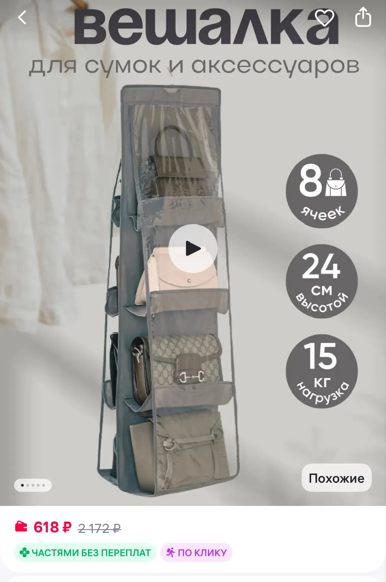 🟪 Вешалка для сумок и аксессуаров органайзер подвесной