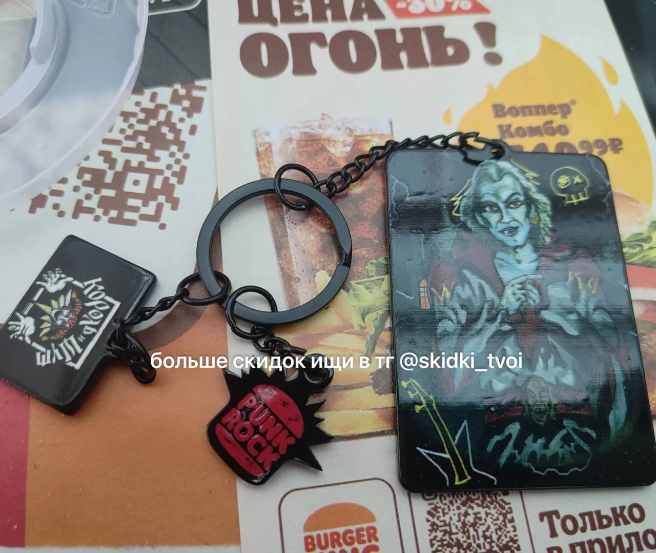 В наборе можно получить один из лимитированных брелоков с культовыми изображениями группы