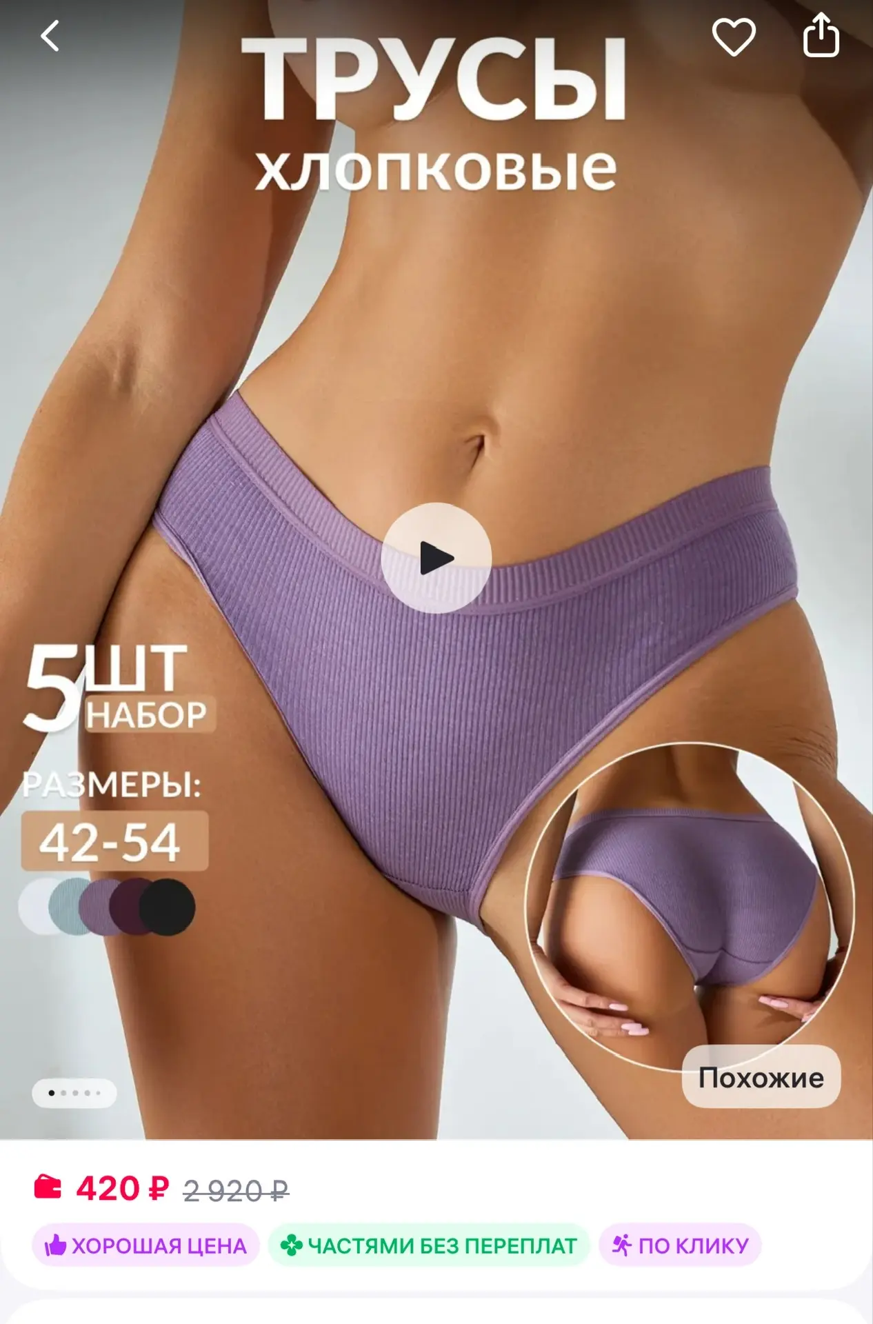 🟪 Трусы женские слипы хлопок в рубчик набор 5 шт