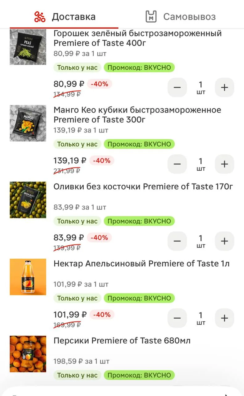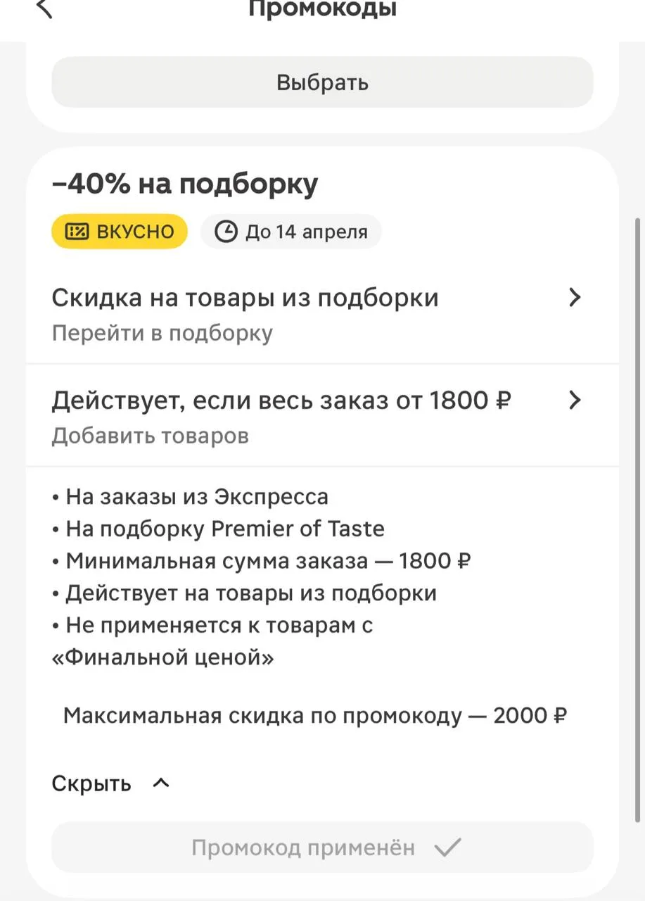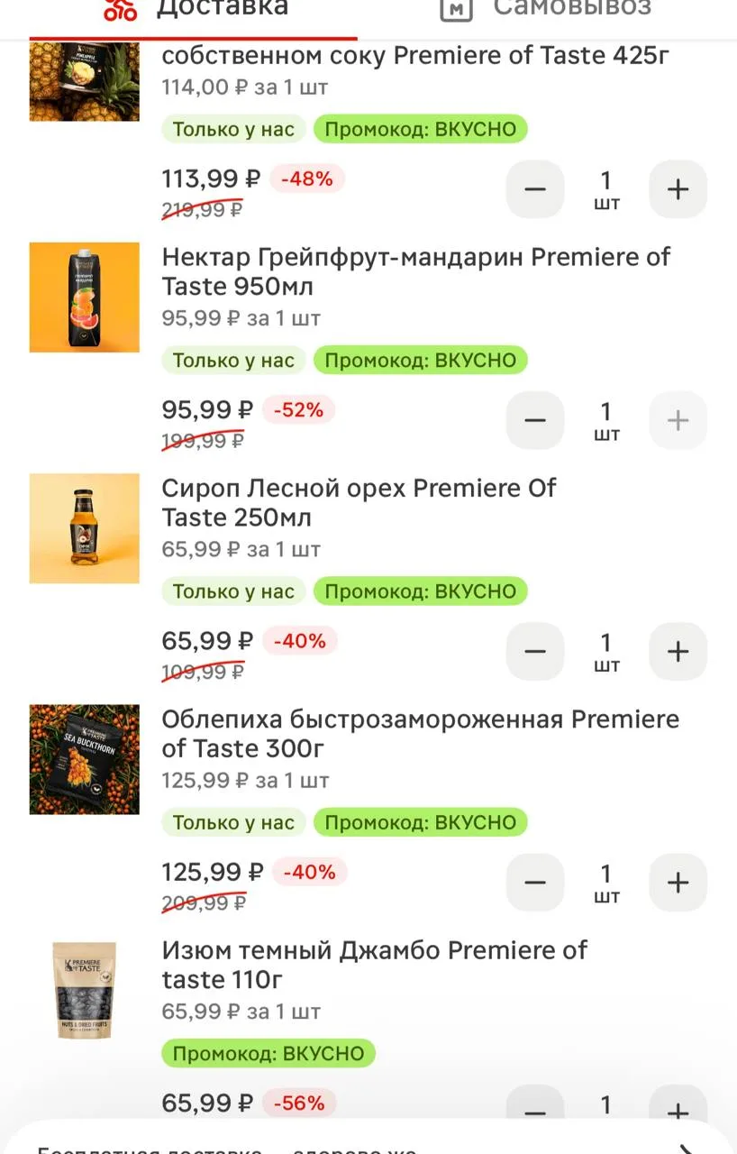 По промокоду ВКУСНО