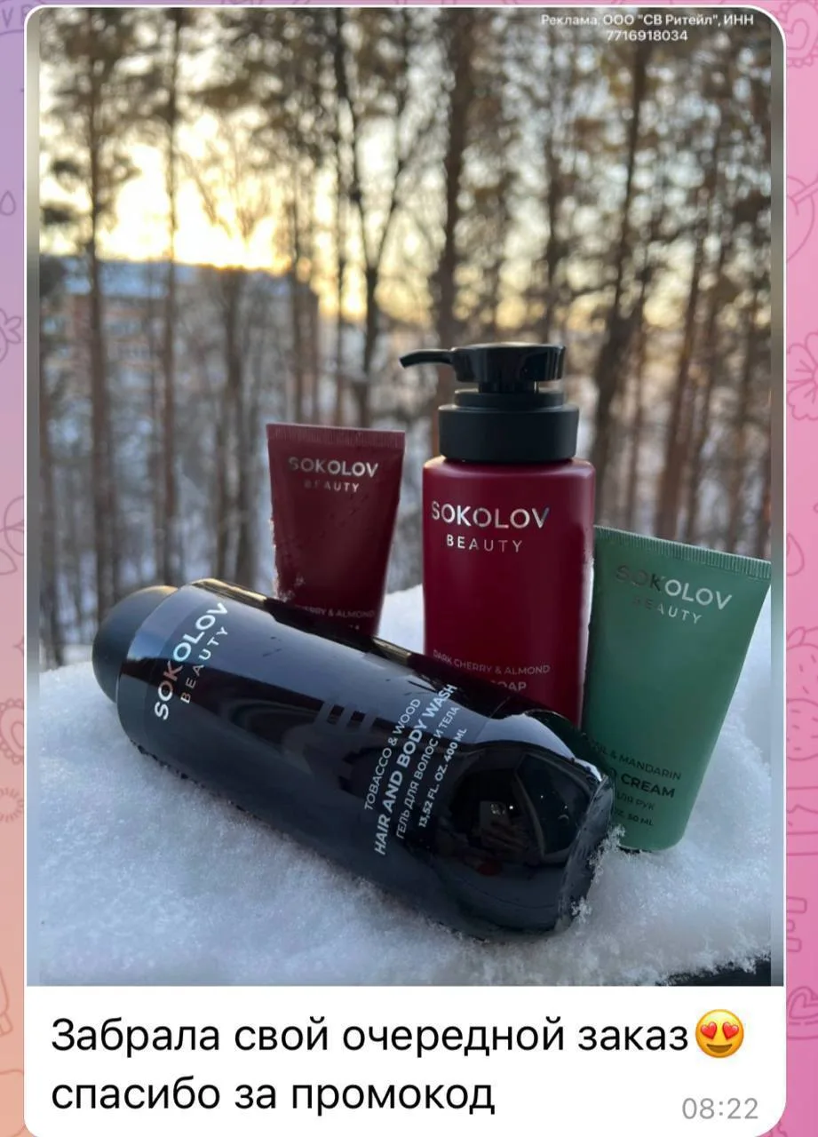 На косметику бренда SOKOLOV действует промокод на доп.скидку 15%: