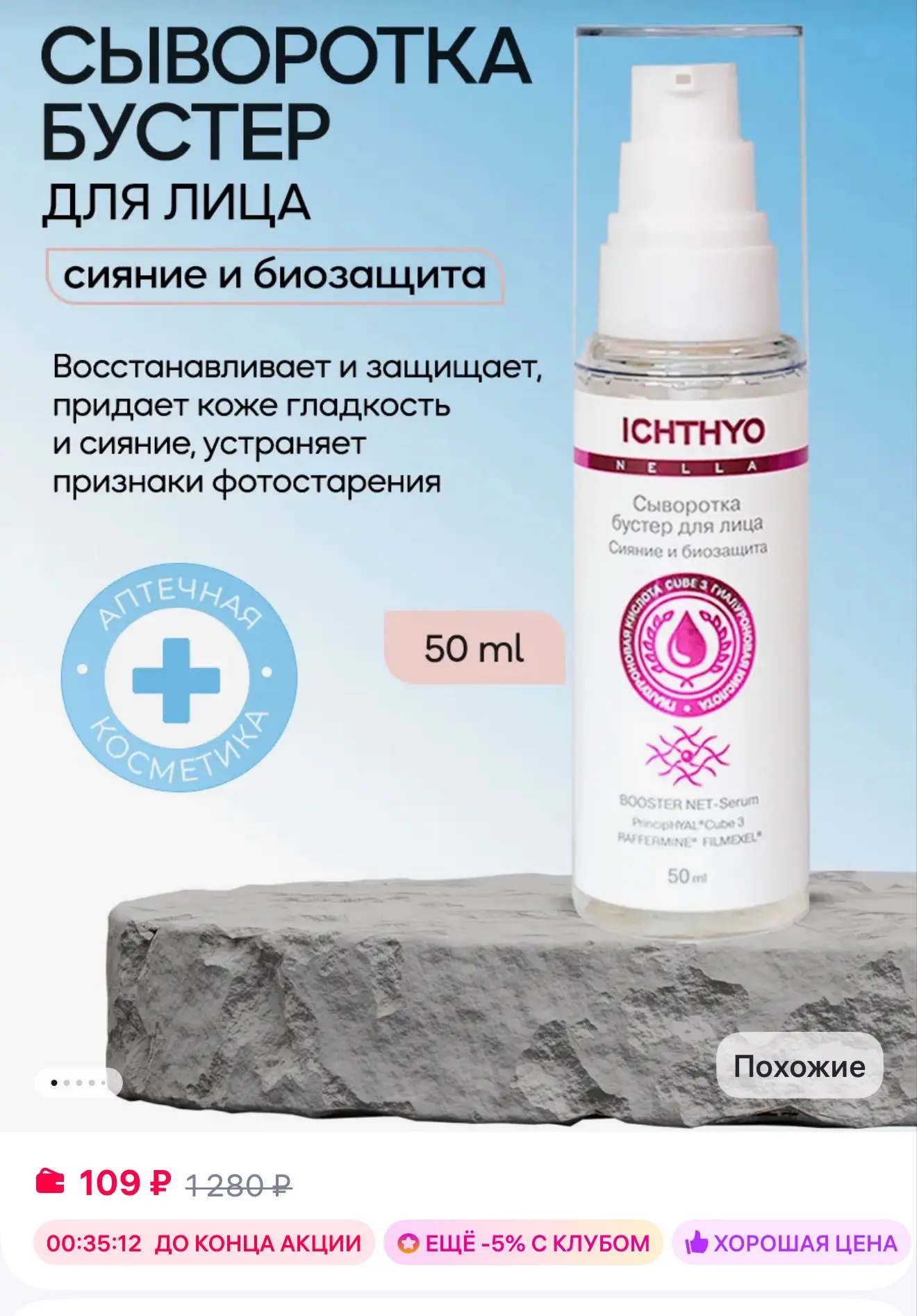 🟪ICHTHYONELLA Сыворотка для лица увлажняющая с синтезом коллагена