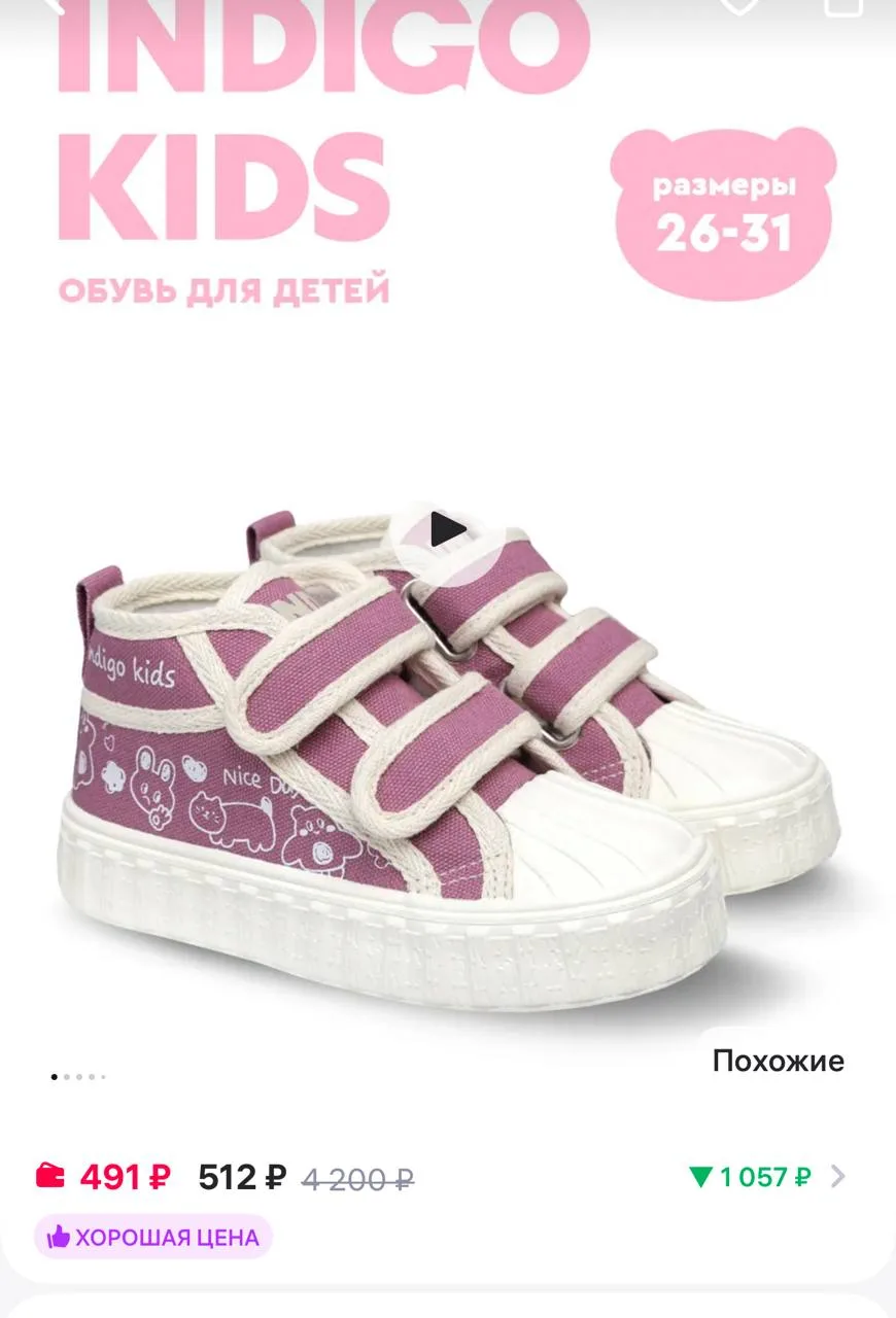 🟪Indigo kids Кеды текстильные кроссовки на липучках