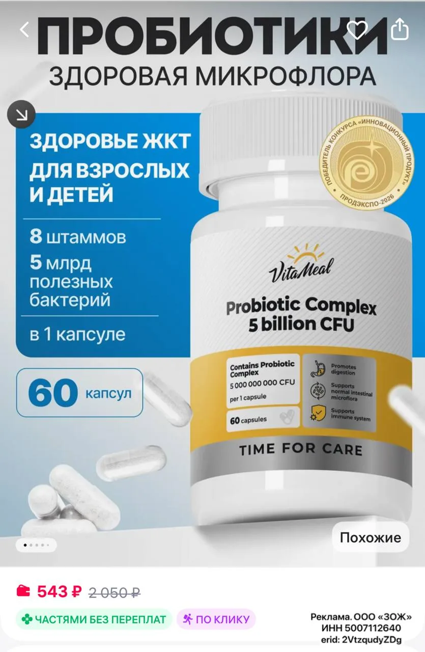 🟪VitaMeal Пробиотики и пребиотики для кишечника для взрослых и детей 60 капсул