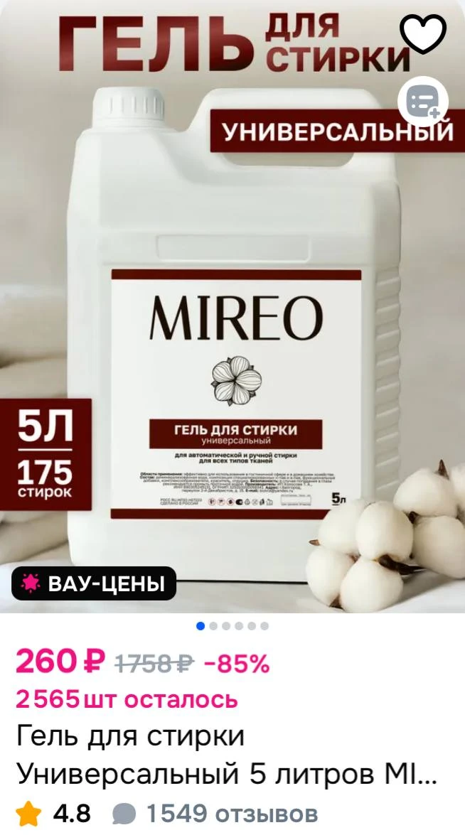 🚙 Гель для стирки Универсальный 5 литров MIREO