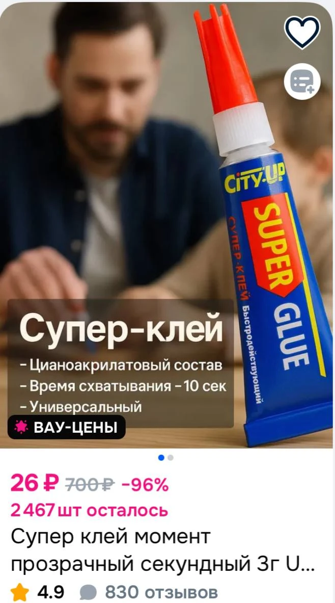 Супер клей момент прозрачный секундный 3г UP-83