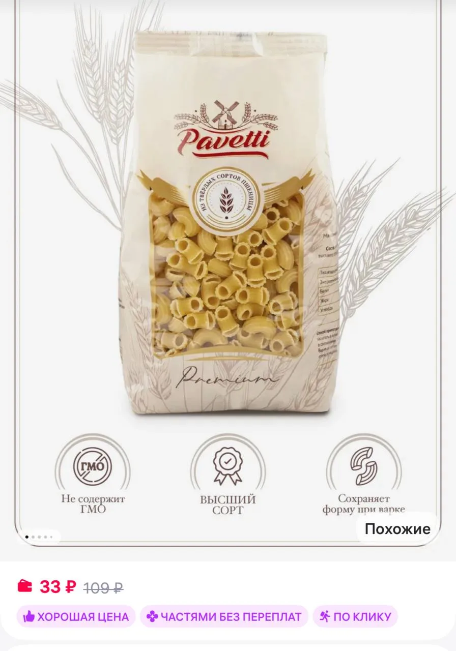 🟪PAVETTI Макароны рожки 450 г