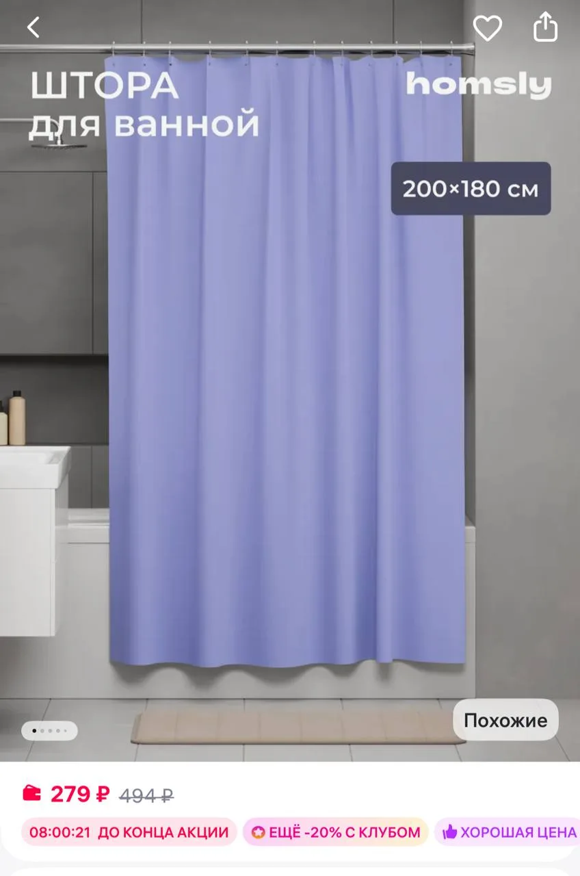 🟪Homsly Штора Basic 8H-003-TCPL-BSC, 200х180 см, лавандовый