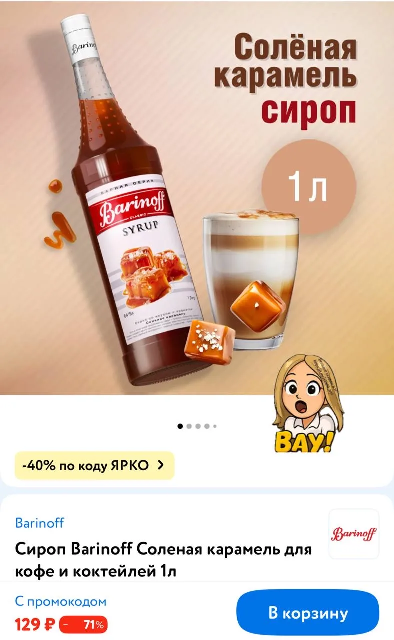 Сиропы Barinoff 1л с промокодом ЯРКО