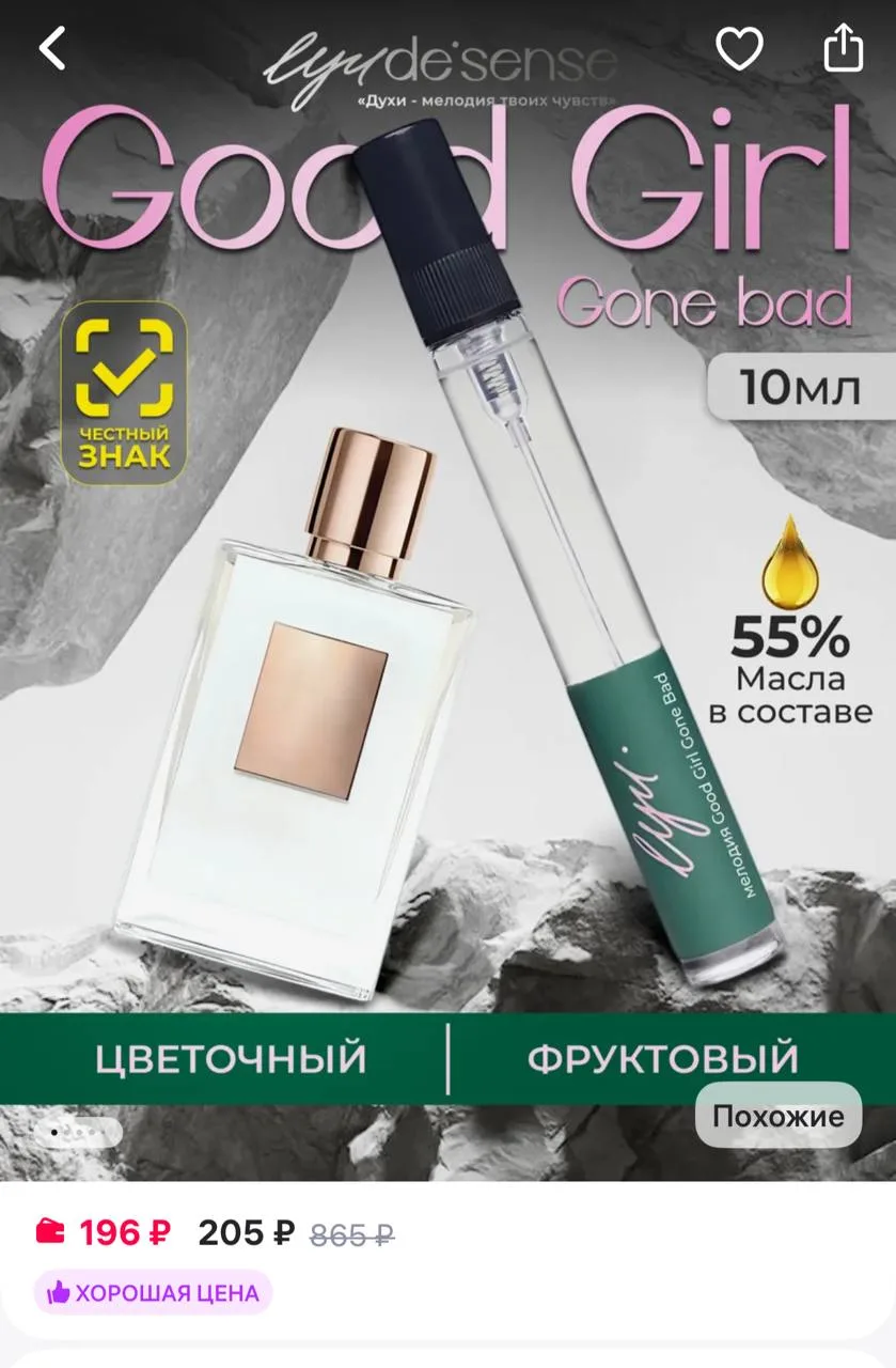 🟪 Lyu de'sense Духи стойкие масляные Good Girl Gone Bad 10 мл