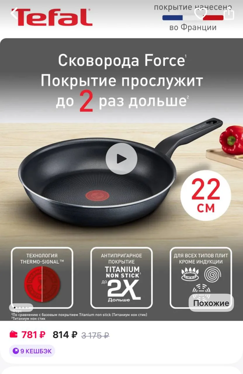 🟪Tefal Сковорода Force 22 см с антипригарным покрытием, глубокая