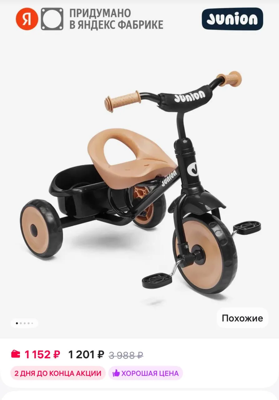 🟪Junion Трехколесный велосипед Windi, чёрный