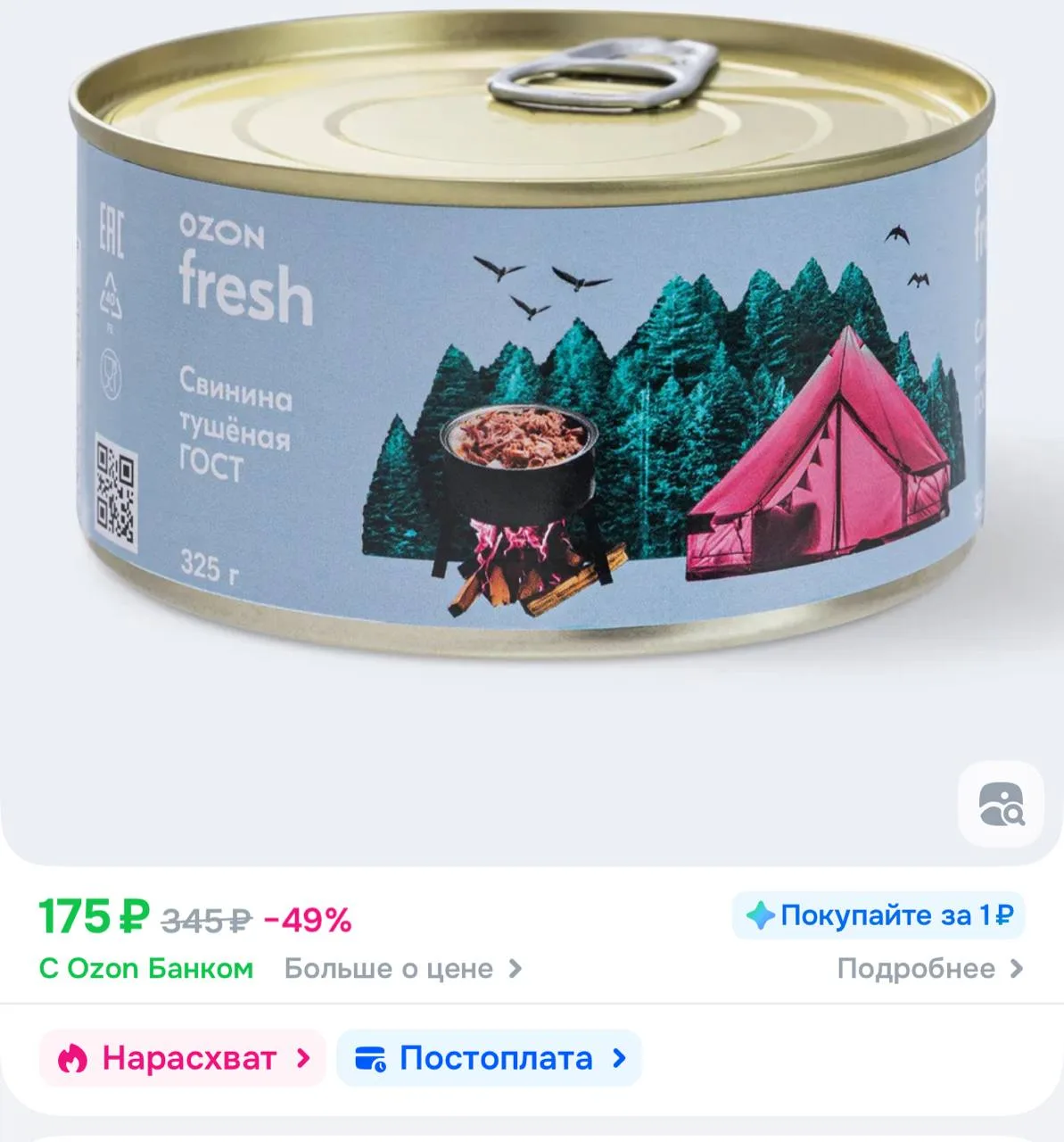 🚙Свинина тушеная ГОСТ 325 г, Ozon fresh