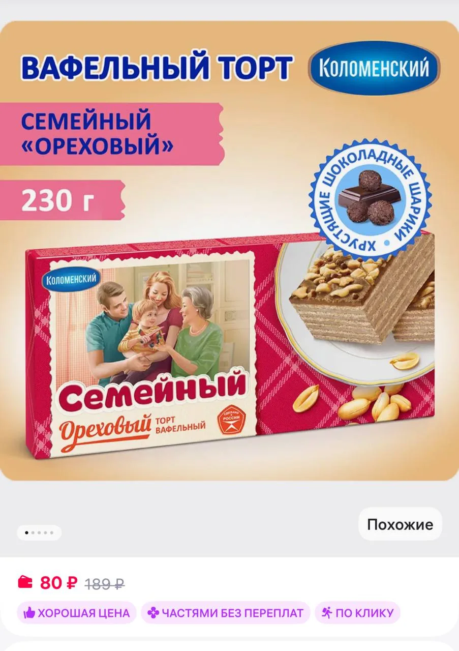 🟪 Коломенское Торт "Семейный" Ореховый 230 гр
