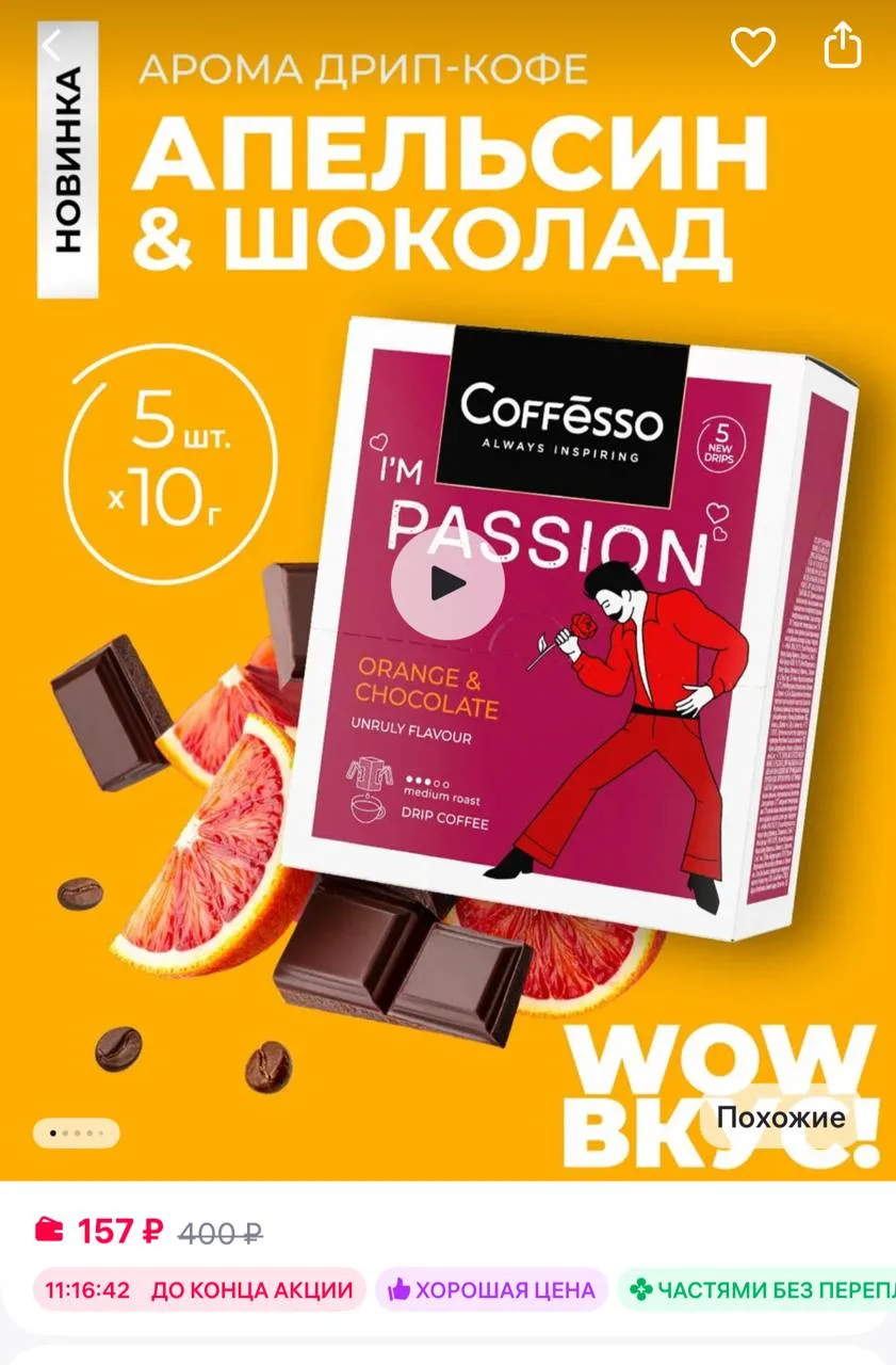🟪COFFESSO Кофе в дрип пакетах 5 шт, красный апельсин, шоколад