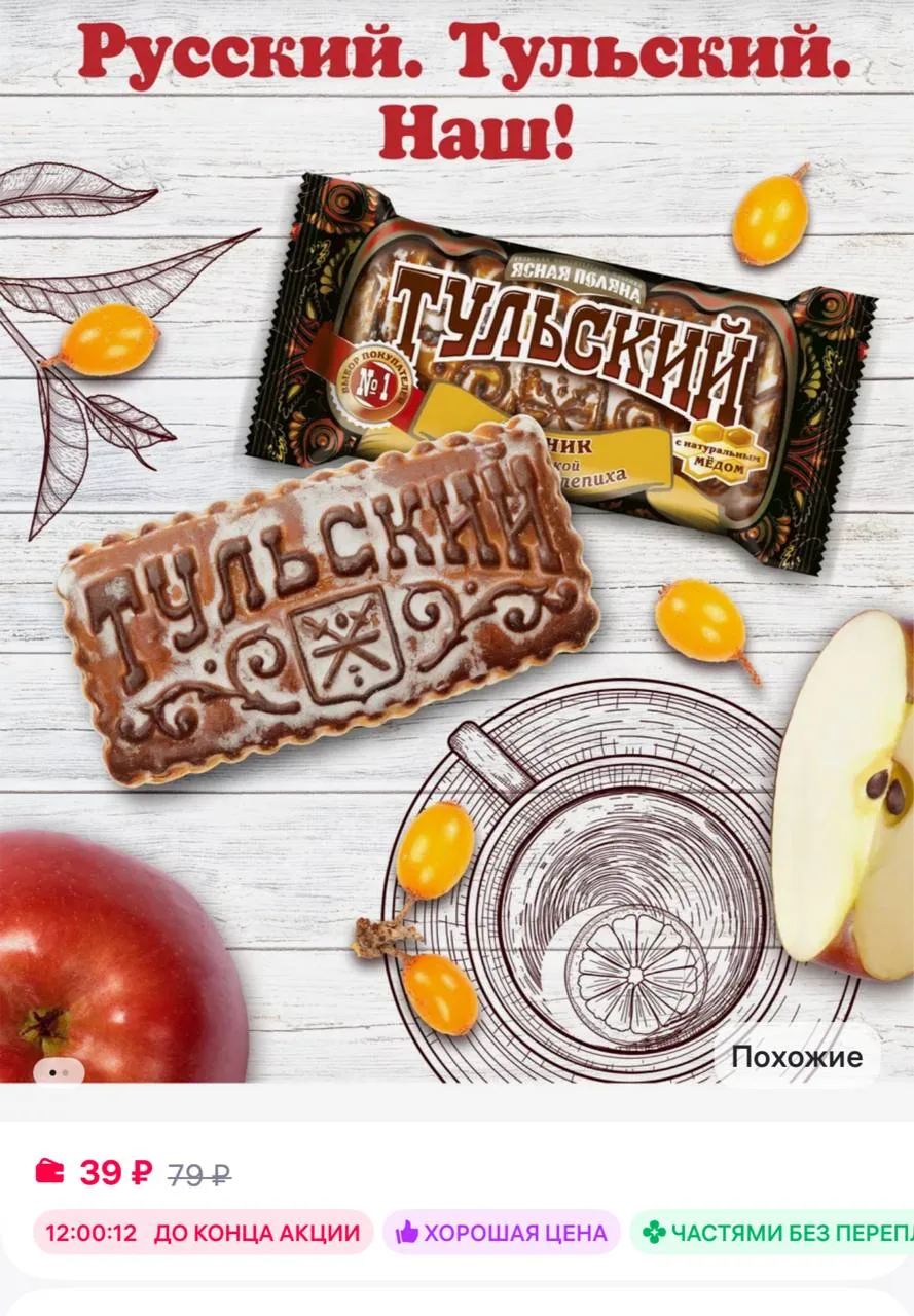 🟪Тульский Пряник Пряник яблоко и облепиха, 130 гр