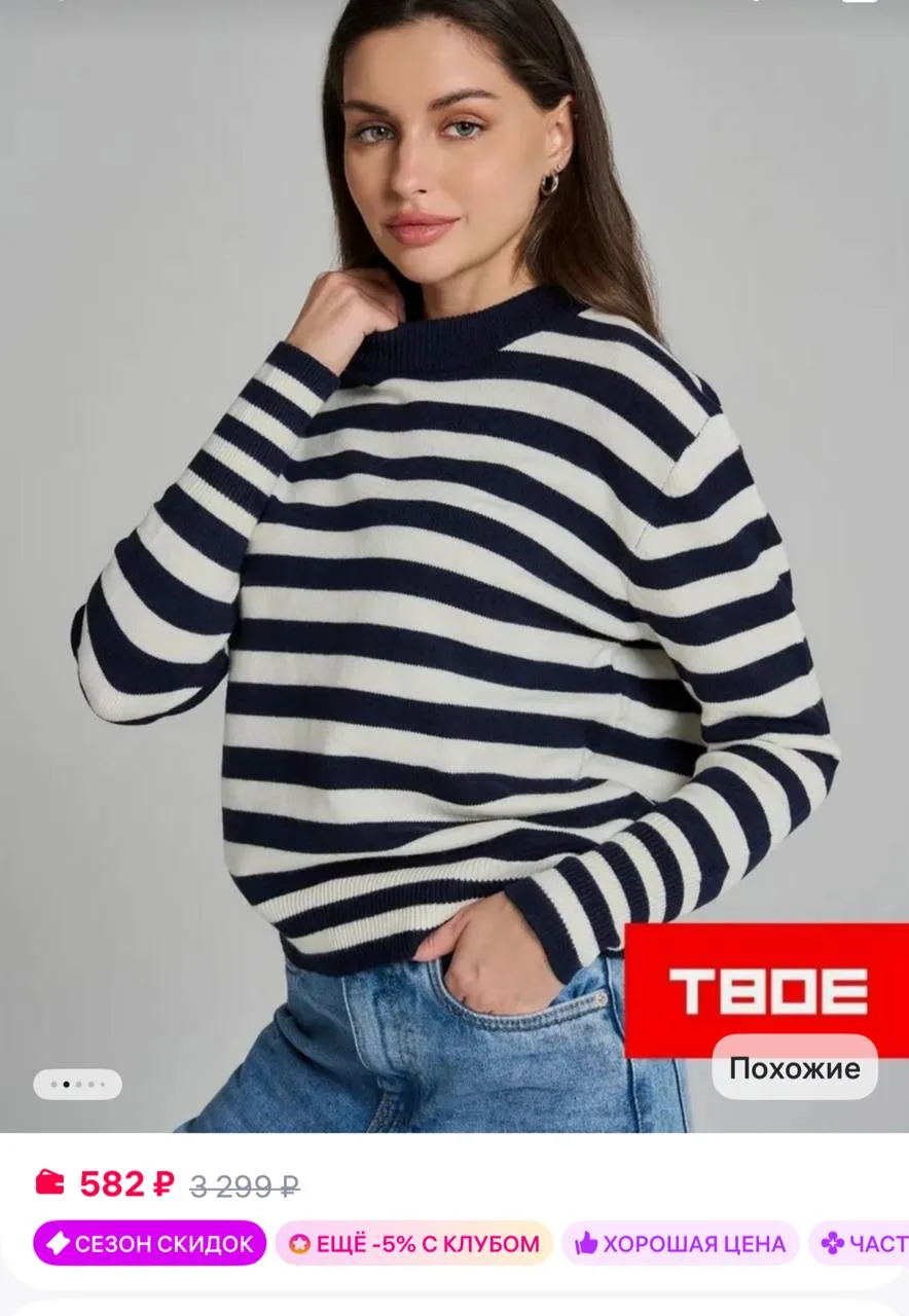 🟪 ТВОЕ Джемпер трикотажный в полоску