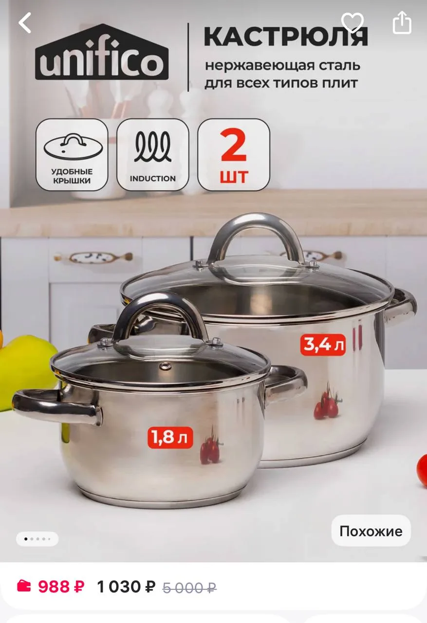 🟪Unifico Набор кастрюль с крышками из нержавеющая сталь Remo 2 шт