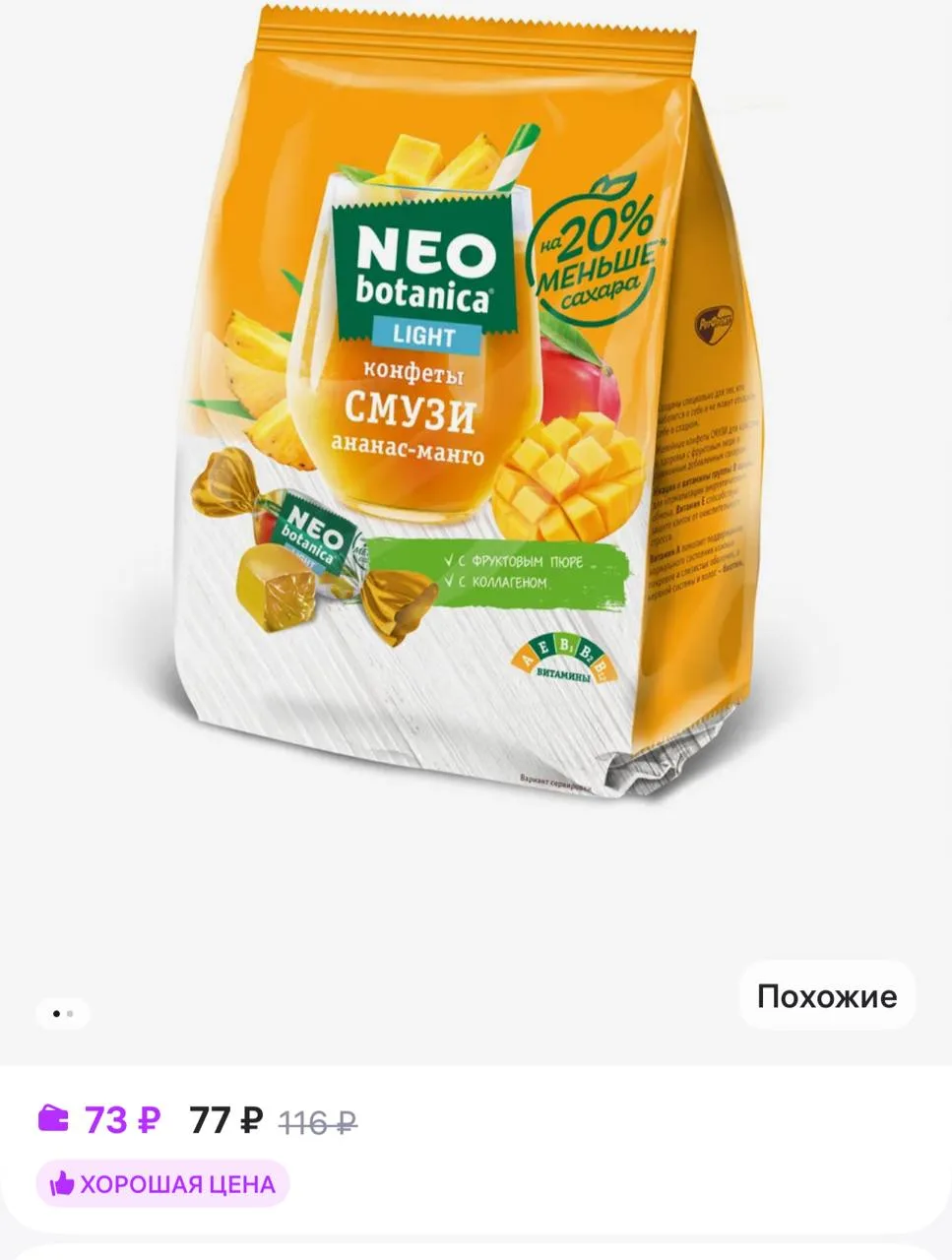 🟪 Neo-botanica Конфеты желейные смузи Ананас-Манго, 150 гр