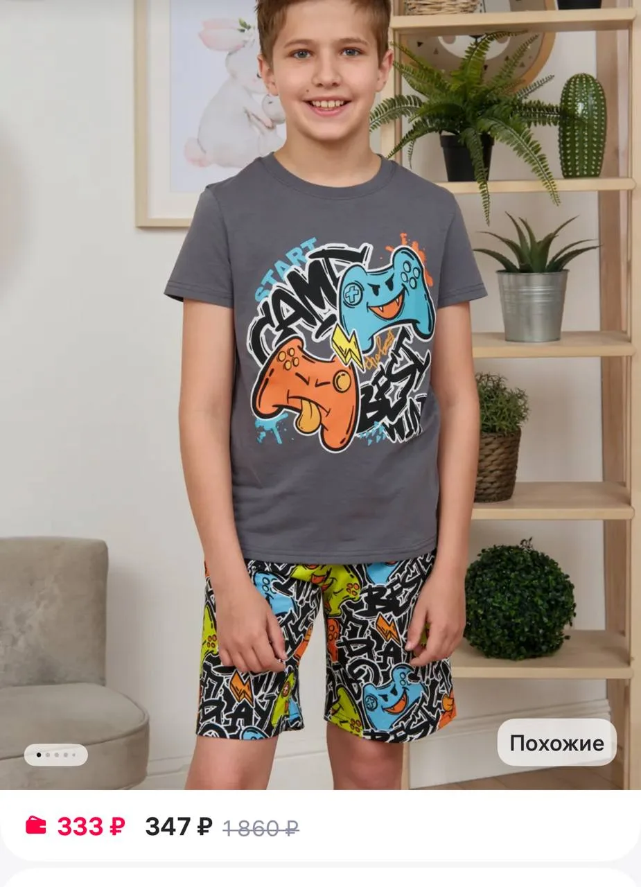🟪КотМарКот детский домашний костюм пижама с шортами