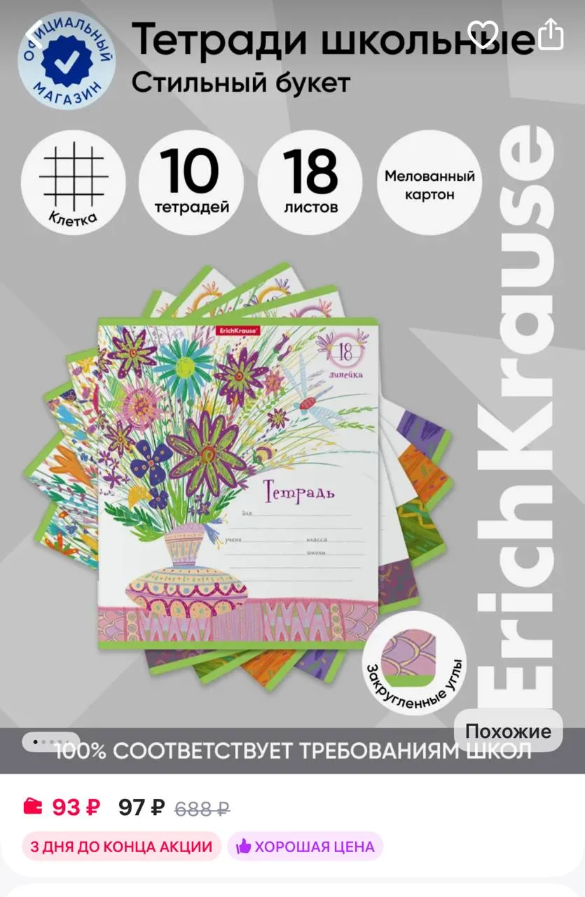 🟪ErichKrause Тетрадь в клетку Стильный букет 18 листов 10 штук
