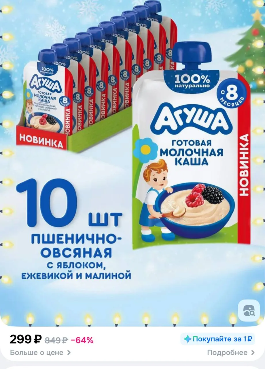 OZON Каша детская молочная Агуша 100гр с 8 месяцев, яблоко ежевика малина пшенично-овсяная, 10 шт