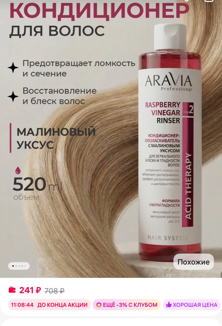🟪ARAVIA Professional Бальзам кондиционер для волос увлажнение c малиновым уксусом 520 мл