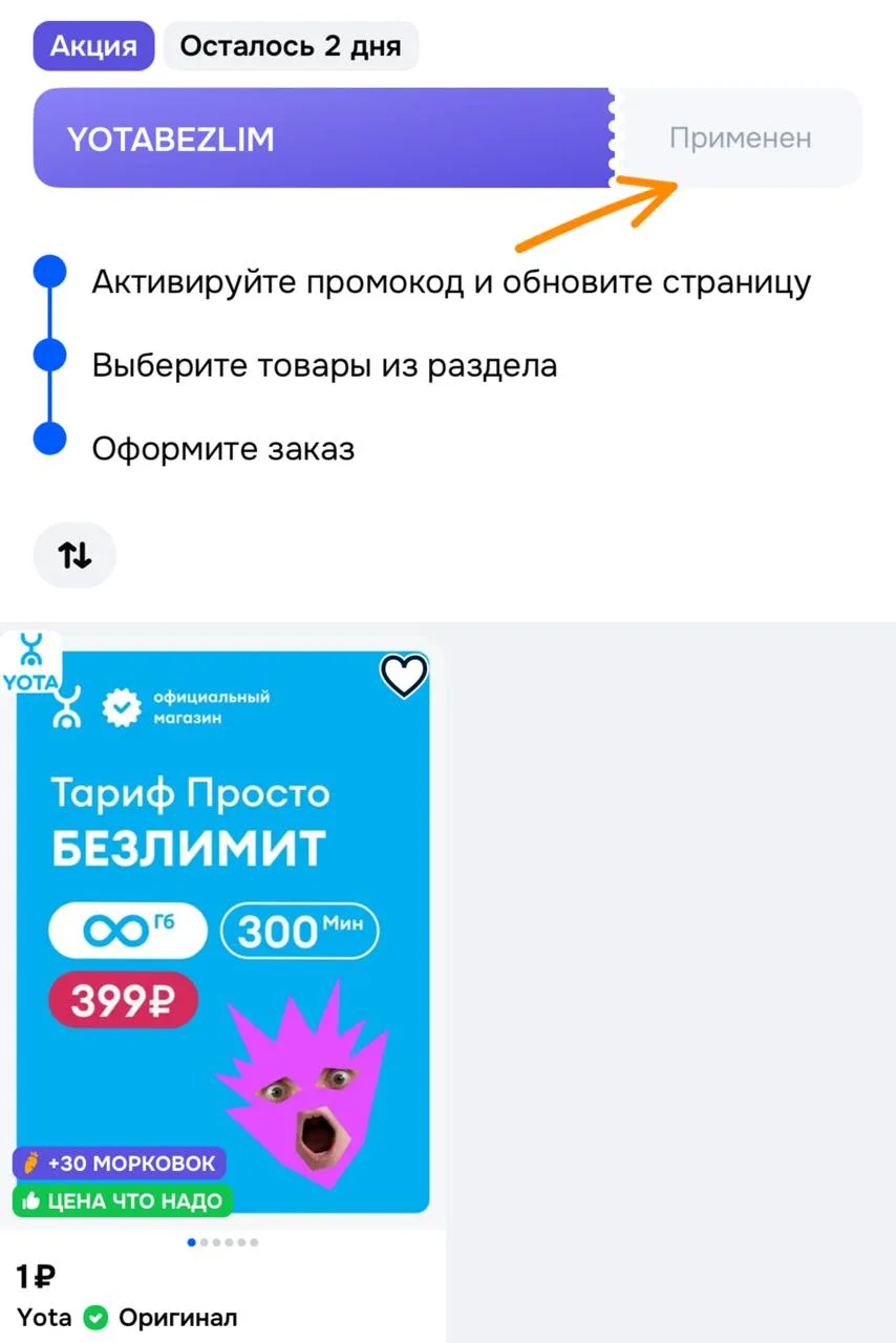 Работает акция от 799₽ в корзине. От ненужного можно отказаться