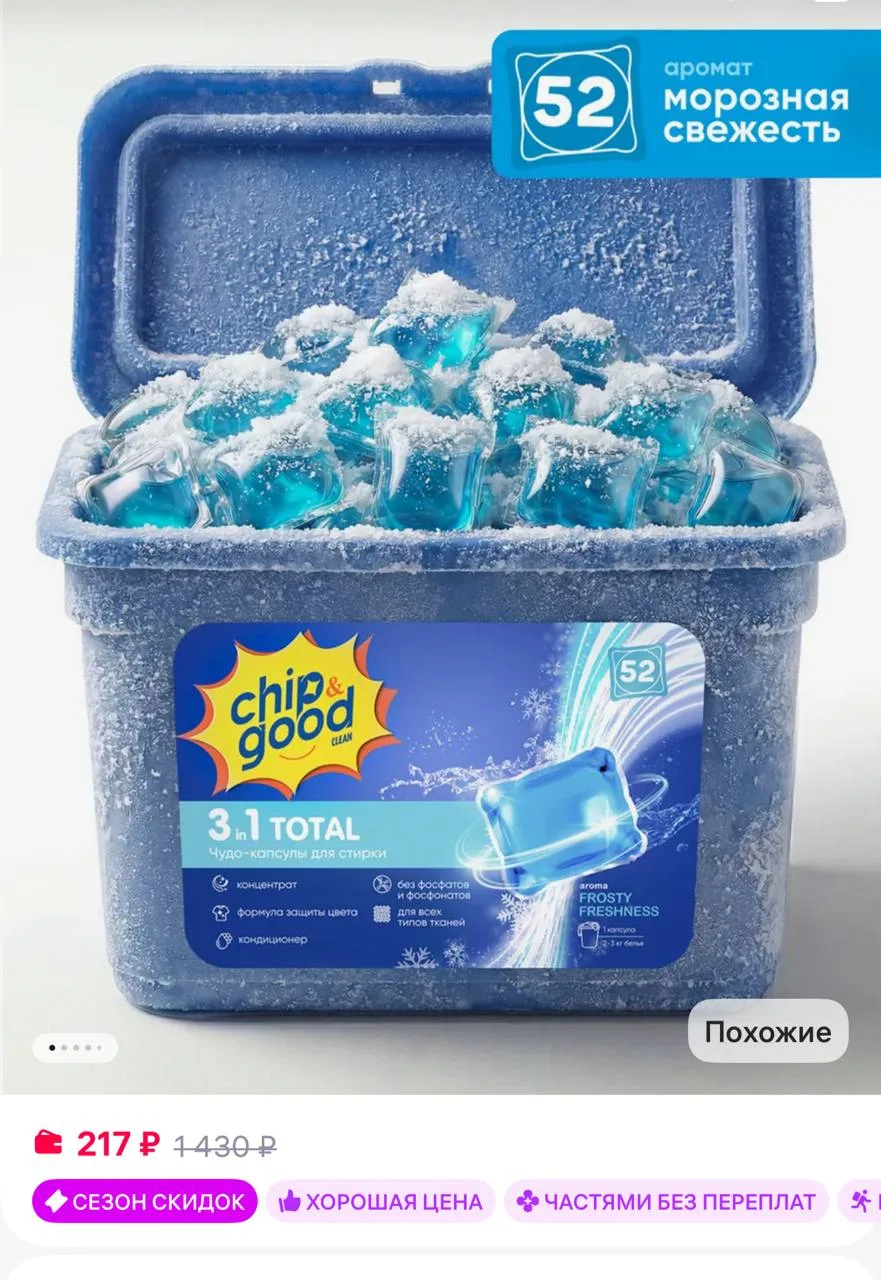 🟪 Chip&Good Капсулы для стирки белья 3в1 с кондиционером набор 52 штуки
