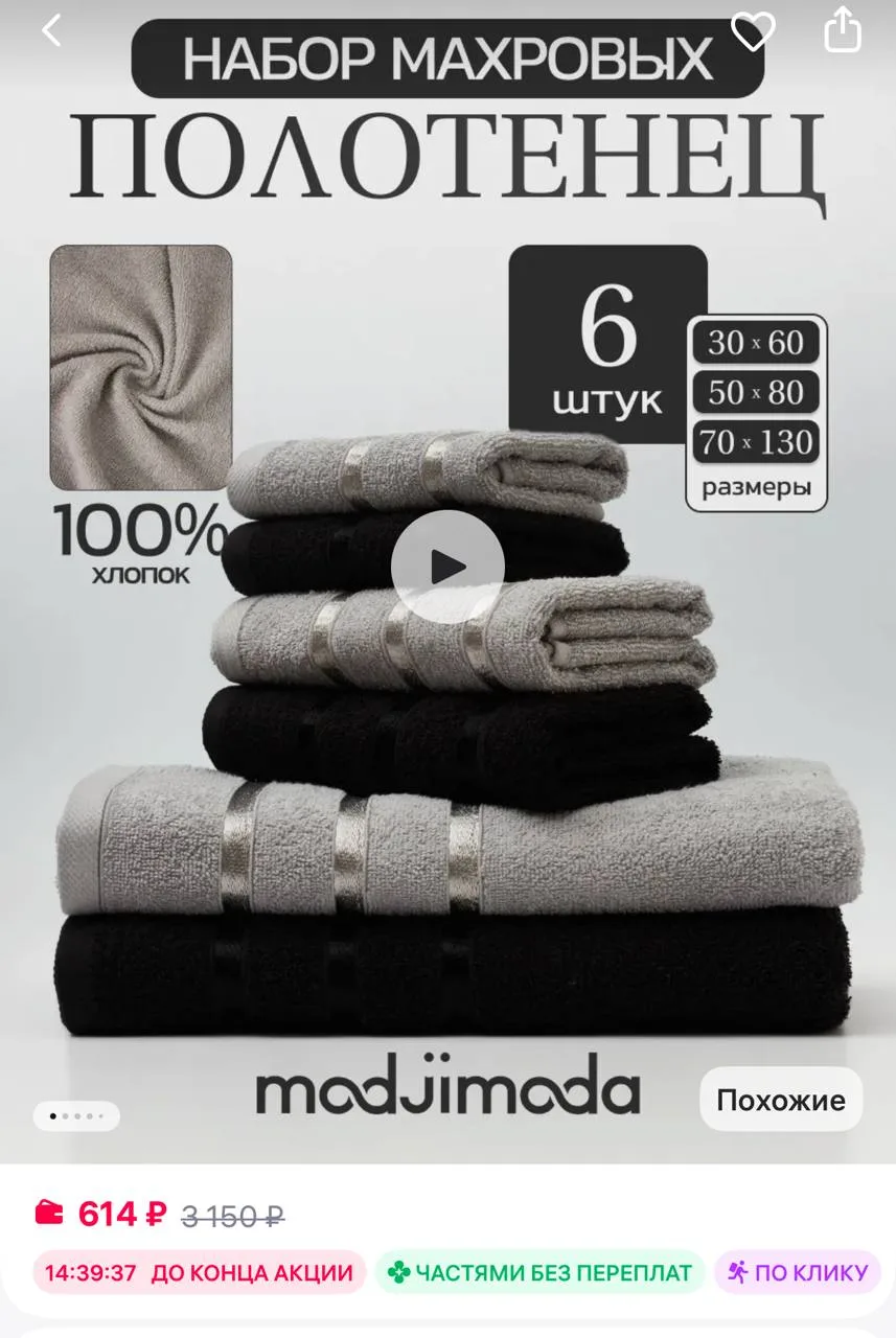 🟪Modjimoda Полотенце махровое банное - набор 6 шт