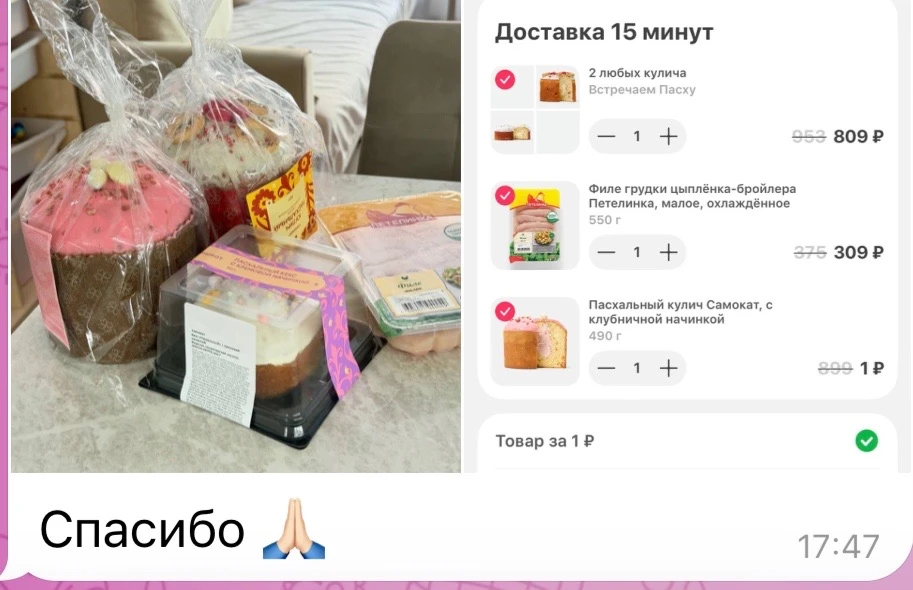 Кулич за 1₽ при заказе от 1000₽🔥