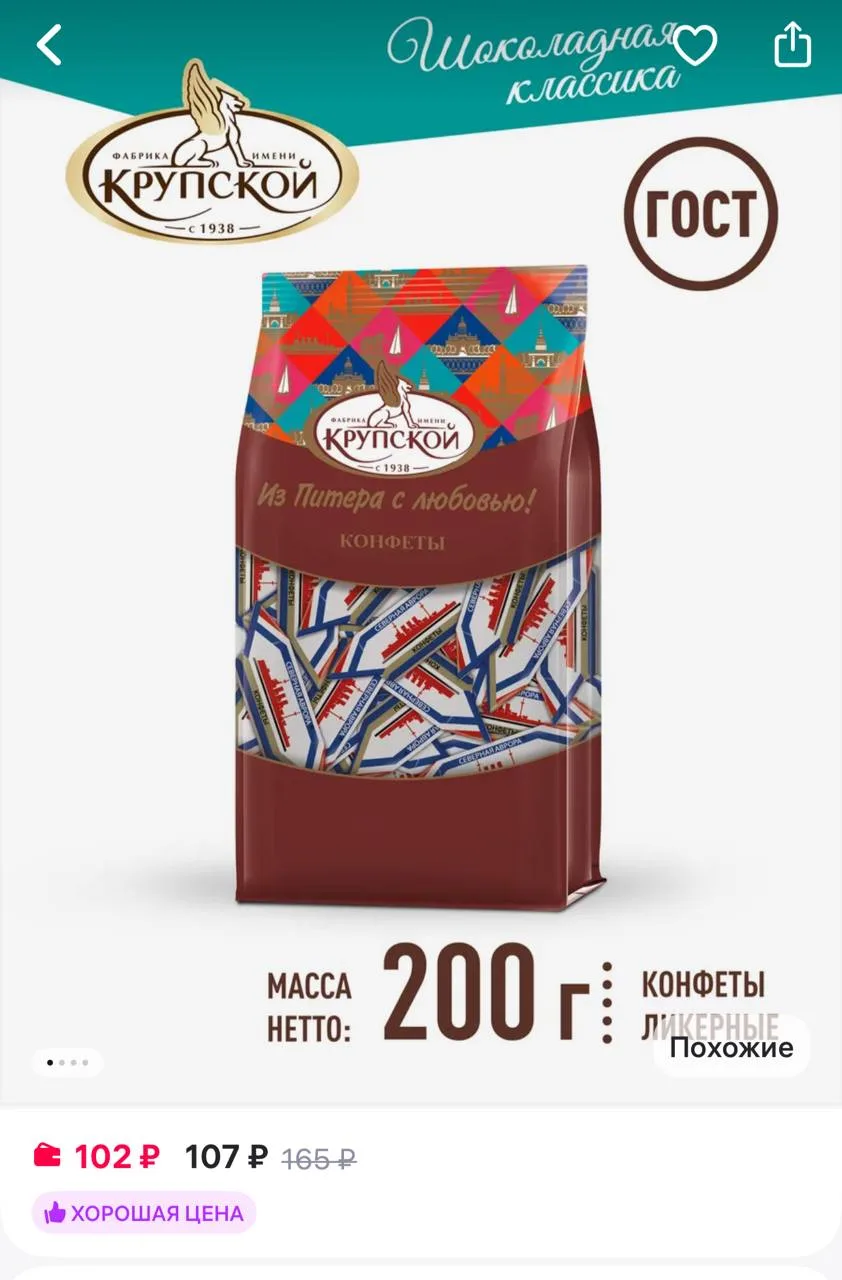 🟪Кондитерская фабрика им. Н. К. Крупской Конфеты "Северная Аврора", 200 гр