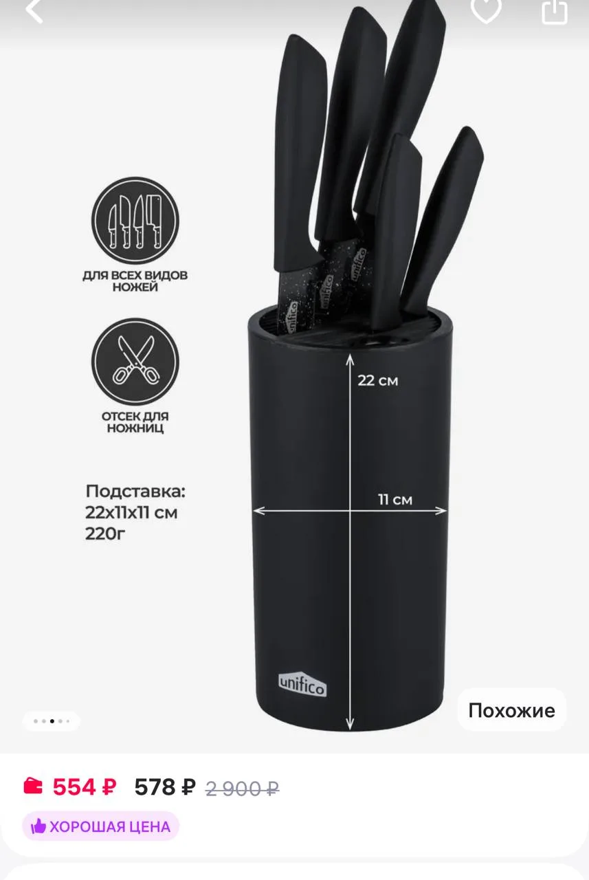 🟪Unifico Ножи кухонные на подставке, набор Teramo black
