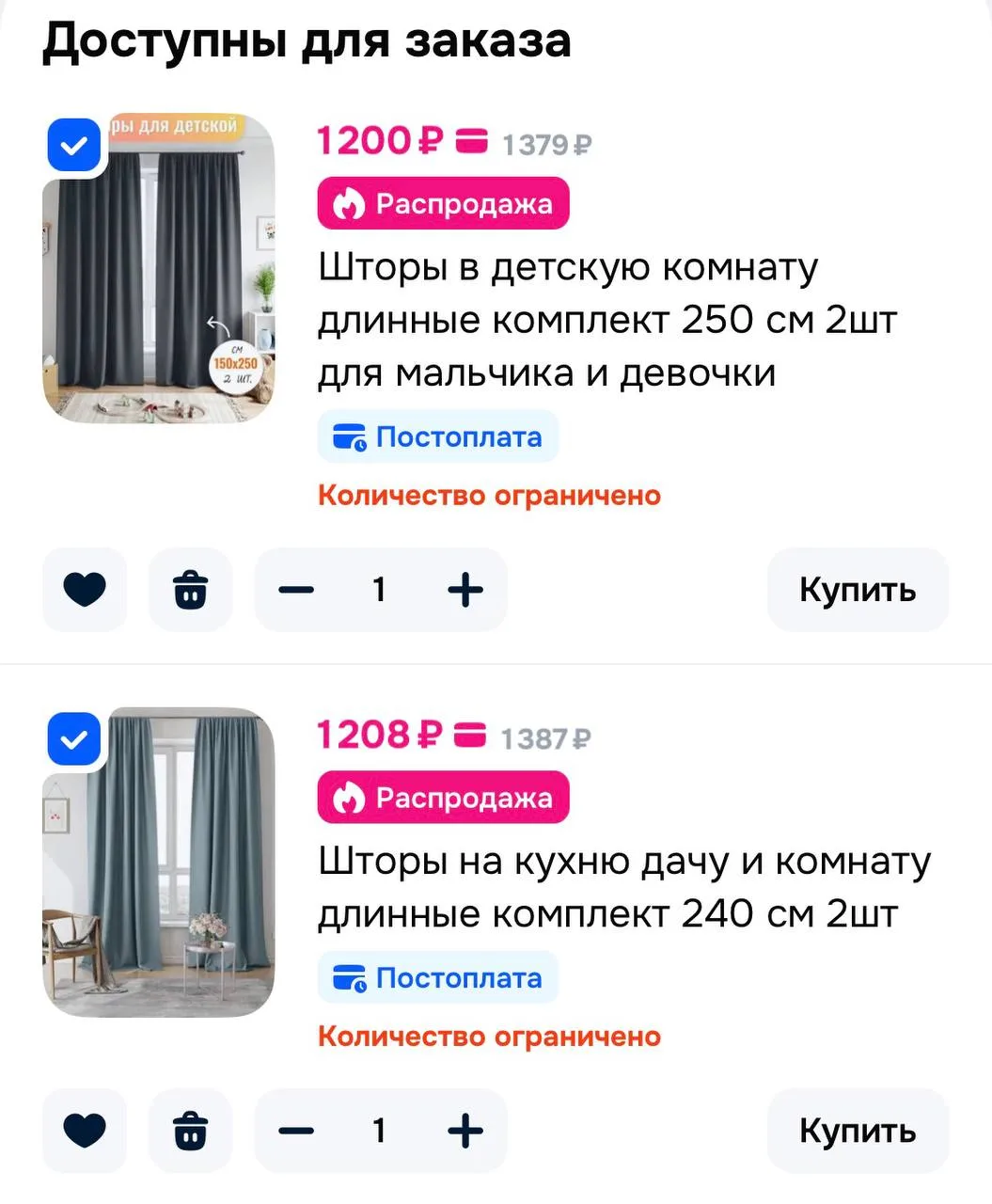 СКИДКА 1000₽ на шторы, условия по ссылке на ОЗОН