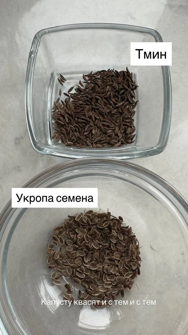 Капуста с тмином и семенами укропа. Следующую партию ставлю с использованием тмина и семян укропа. И то и то активно применяют, для меня это вкус детства , бабушка так готовила.