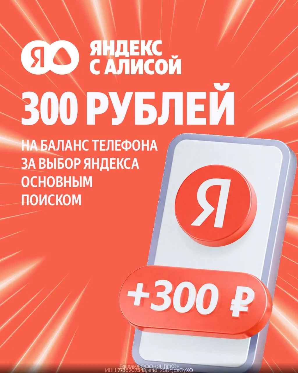 ‼️300₽ на баланс телефона от Яндекса