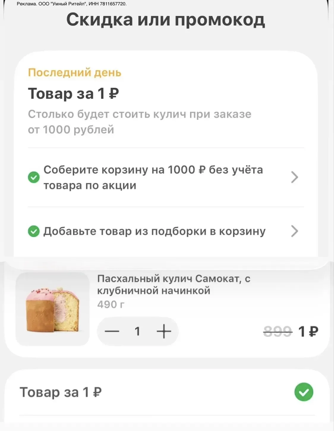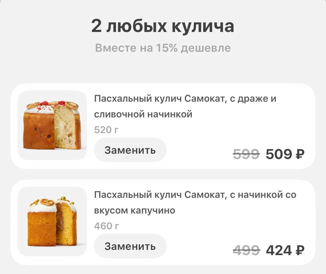 🔥🔥🔥КУЛИЧ за 1₽ в Самокате при покупке от 1000₽ товаров из подборки.