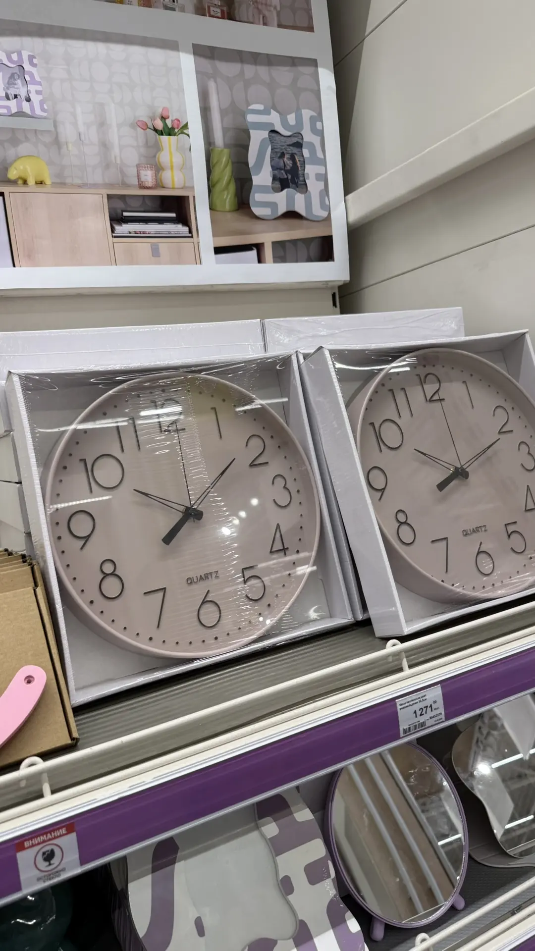 ✅ Часы настенные круглые пластик цвет розовый бесшумные ø30.5 см