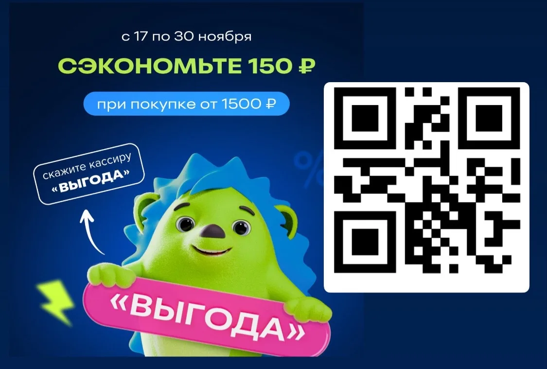 💙 Предпочитаете кассы самообслуживания? Тогда просто отсканируйте QR‑код по ссылке и получите свою порцию выгоды! 😇